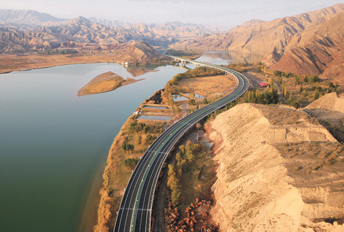 蘭州至永靖沿黃河快速通道是甘肅省甘南州、臨夏州與青海、河西走廊及新疆之間交通往來(lái)的重要通道,也是黃河岸邊的一條重要生態(tài)旅游線。中交二公局承建蘭永沿黃快速通道6公里路基橋涵工程及全線48.58公里的路面工程。其中三江口黃河特大橋工程獲甘肅省建筑工程飛天獎(jiǎng)。