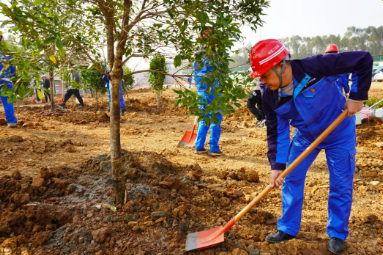 當(dāng)枝松高速項(xiàng)目以“推進(jìn)高速公路綠化景觀提升,共建綠色低碳工程”為主題,開(kāi)展3·12植樹(shù)活動(dòng)。志愿者們有的揮鍬鏟土,有的分發(fā)樹(shù)苗,有的扶樹(shù)栽苗,有的填土澆水,整個(gè)過(guò)程配合得十分默契。大家共同栽下40棵紅楓樹(shù),目之所及“中交藍(lán)”和一片片令人舒心的綠意相映成畫(huà),到處都是忙碌的身影和勞動(dòng)的歡聲笑語(yǔ)。(何晴晴)